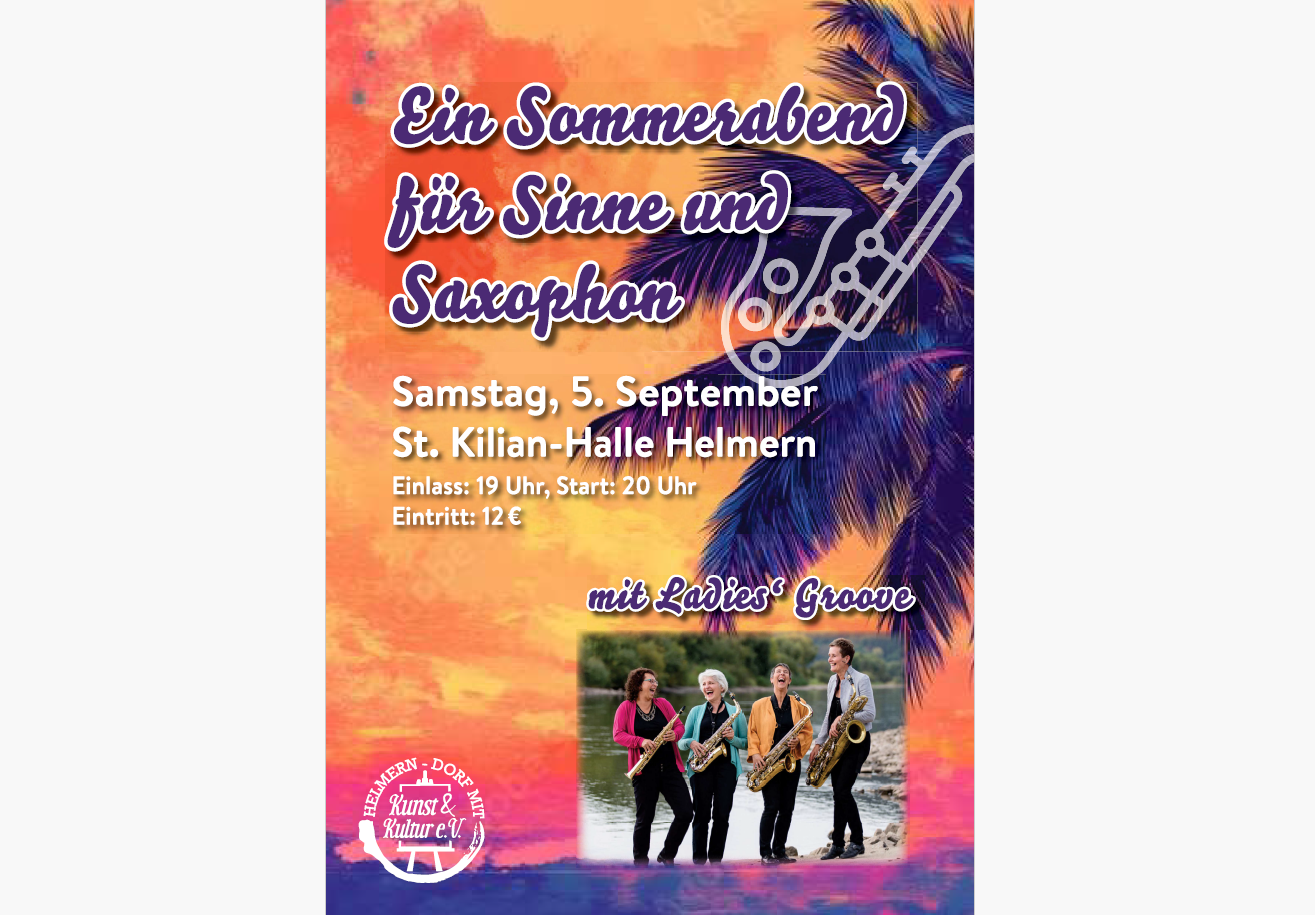 Im Rahmen der Mitgliederversammlung wurde das große Sommerevent unseres Vereins vorgestellt. Als Jahreshöhepunkt wird am 5. September ein „Sommerabend für Sinne und Saxophon“ stattfinden. Vier Saxophonistinnen von „Ladies Groove“ werden Musik vom Feinsten in unterschiedlichen Stilrichtungen bieten. Ein Genuss für alle Sinne!
