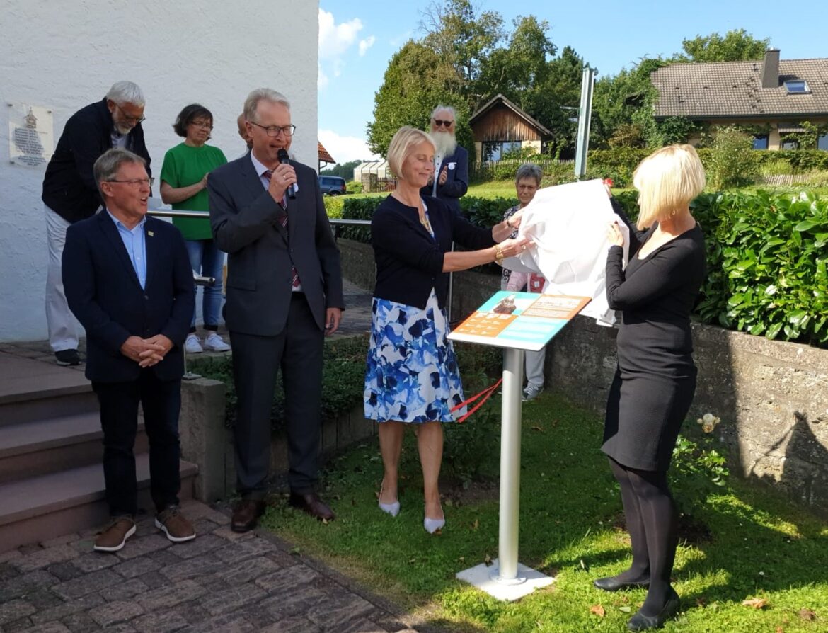 Unter der Schirmpatenschaft von NRW-Familienministerin Josefine Paul wählt das landesweite Projekt „Frauenorte“ insgesamt 50 Orte aus den eingereichten Bewerbungen aus, an denen historische Frauenpersönlichkeiten und ihr Lebenswerk geehrt werden. Der NRW-Frauenrat als Träger des Projekts hat in der letzten Auswahlrunde der Bewerbung des gemeinnützigen Vereins „Helmern – Dorf mit Kunst und Kultur“ den Zuschlag gegeben. Der Verein freut sich, dass die in Helmern geborene Äbtissin Benedicta von Spiegel (1874-1950) in das Projekt aufgenommen und damit im Jahr ihres 150. Geburtstages in besonderer Weise geehrt wird. Die feierliche Eröffnung des neuen NRW-Frauenorts mit einer Gedenkstele auf dem Vorplatz der St. Kilian Kirche konnte am Sonntag, dem 25. August mit mehr als 100 Gästen begangen werden. Helmern ist neben Höxter der einzige NRW-Frauenort in der Region Paderborn und Höxter.