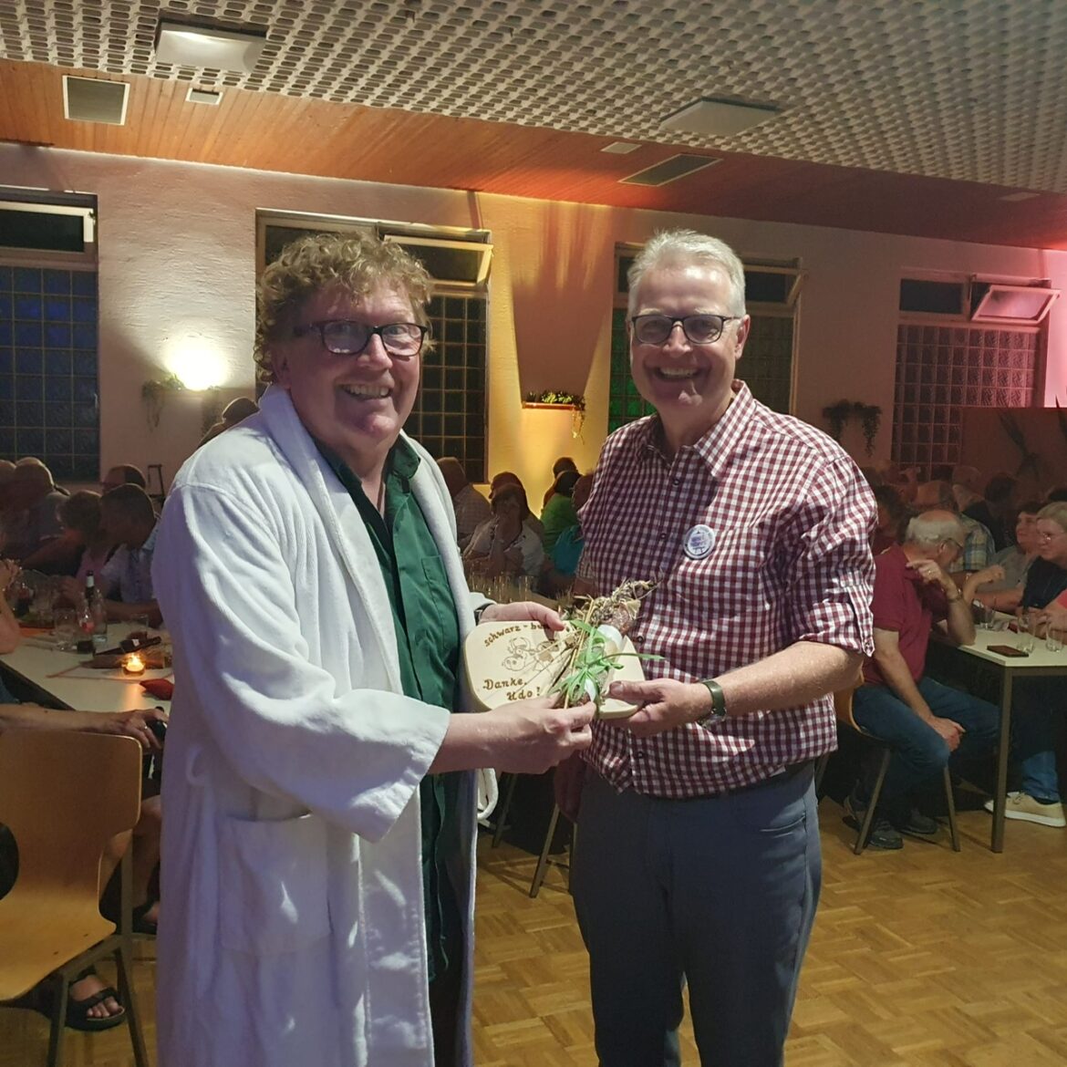 Als Dank gab es von Udo Reineke noch eine Zugabe – nach der Art von Namensvetter Udo Jürgens – im weißen Bademantel.